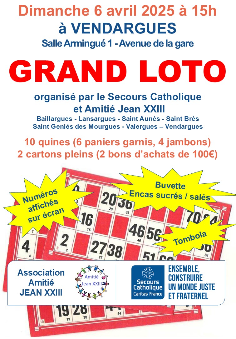Grand loto du secours populaire et amitiés Jean XXIII à vendargues le 6 avril
