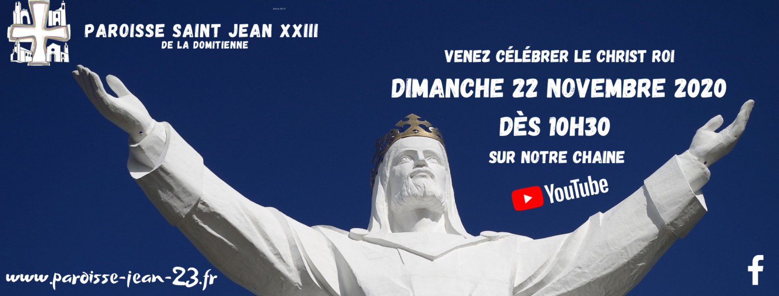 Dès le dimanche 22 novembre, une nouvelle messe vous sera proposée sur la chaîne Youtube, la page Facebook et le site internet de la paroisse. Ainsi, nous pourrons tous ensemble célébrer la fête du Christ Roi de l’Univers. Nous vous attendons nombreux pour cette nouvelle occasion de nous rassembler autour de la Bonne Nouvelle de notre Seigneur Jésus Christ.
